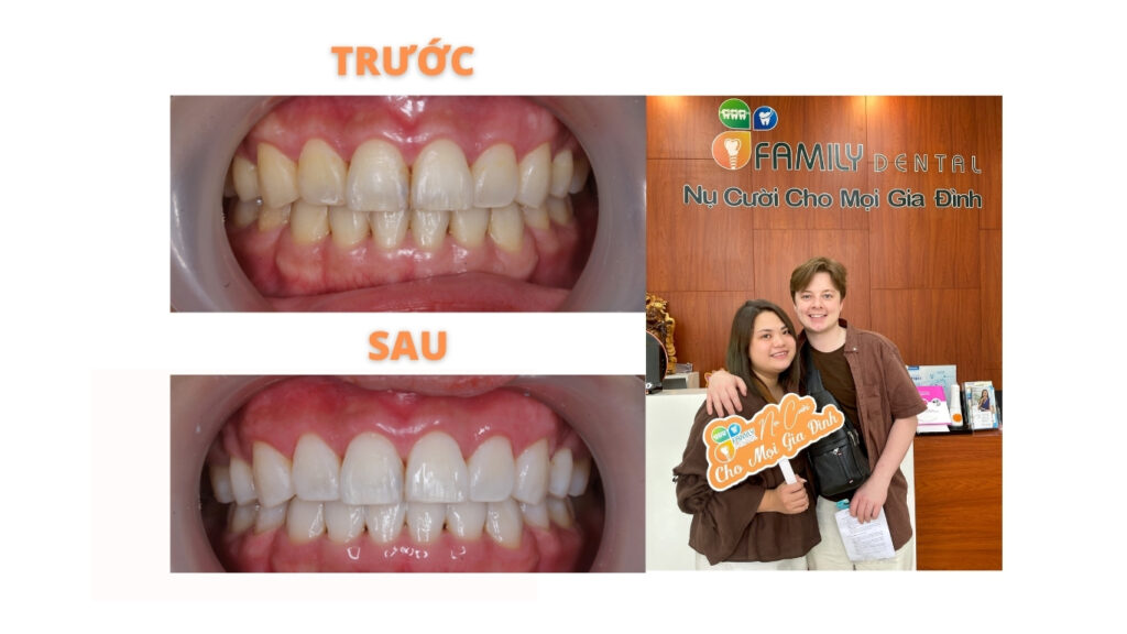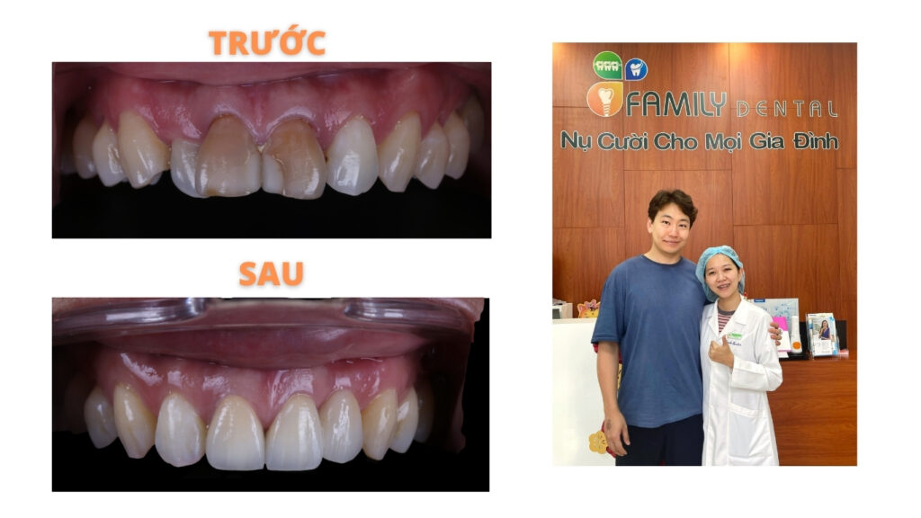 Mình được sự tin tưởng của bạn bè giới thiệu, mình đến với Family Dental trong tình trạng răng bị tuột nướu, màu răng vàng gây mất thẩm mỹ và ngại ngùng khi giao tiếp. Được sự thăm khám và tư vấn nhiệt tình từ bác sĩ Cao Thành Trung, mình đã lựa chọn phương pháp điều trị phục hình răng sứ thẩm mỹ. Cùng với “bí kíp” lựa chọn màu răng tự nhiên, phù hợp màu da, màu môi, độ tuổi và theo mong muốn, mình đã có một nụ cười rạng rỡ tự nhiên nhất. Điều đặc biệt là sự trải nghiệm tại Family Dental mang lại cảm giác gần gũi, được chăm sóc kỹ lưỡng trước trong và sau điều trị.