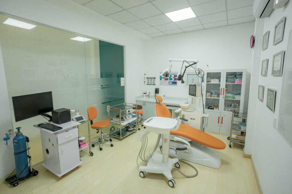 Khu vực dành cho các điều trị phục hình, tổng quát, thẩm mỹ răng, chỉnh nha phòng điều trị với ghế nha khoa hiện đại.