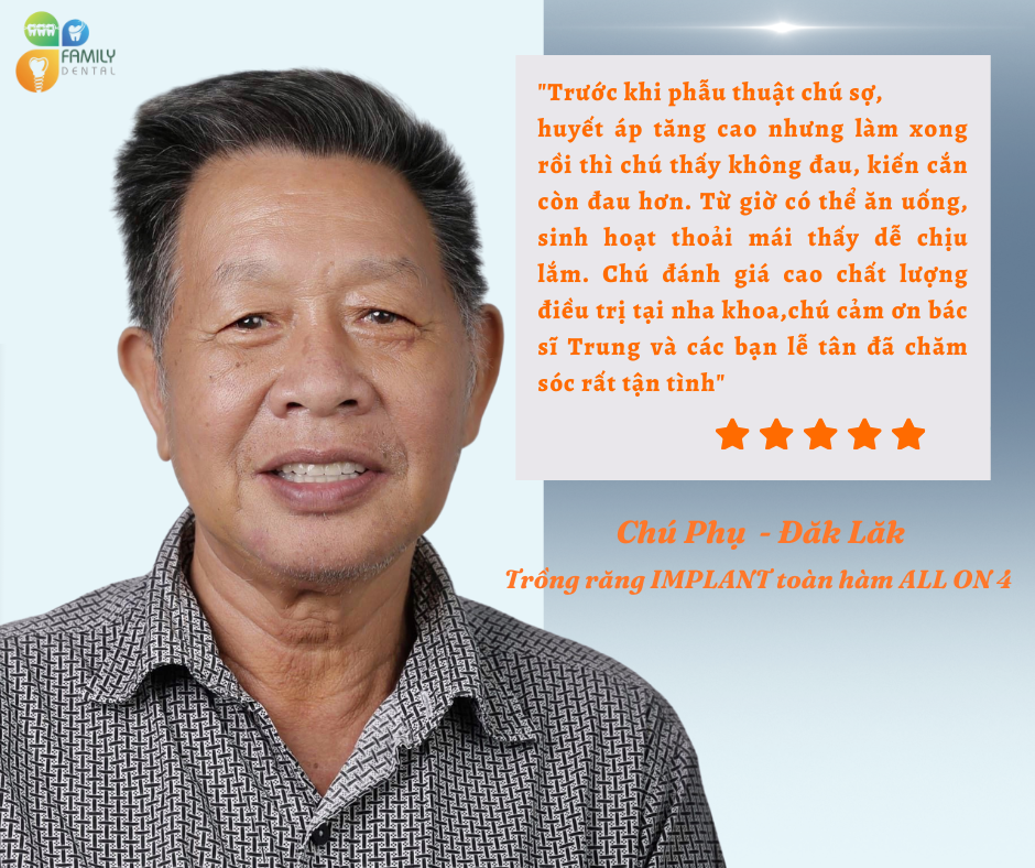 5.5. Khách hàng LƯU VŨ PHỤ – (82 tuổi – TP Buôn Ma Thuột) sử dụng dịch vụ trồng răng Implant toàn hàm tại FAMILY DENTAL