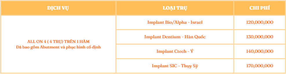 Với kỹ thuật trồng răng giả nguyên hàm bằng cấy ghép implant, cô chú/anh chị sẽ không cần trồng lại tất cả răng đã mất bằng trụ implant mà chỉ cần áp dụng phương pháp trồng răng all – on – 4 hoặc all – on – 6.